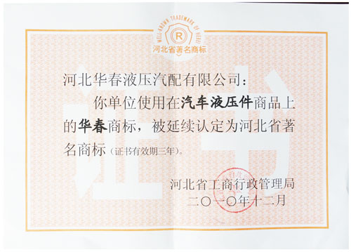 河北華春液壓汽配有限公司技術開發(fā)中心,開始3人組成逐步擴大發(fā)展到現在的15人,新產品開發(fā)由1個發(fā)展到現在50多個,專利產品由96年第一項專利發(fā)展到現在的專利產品40項,其中發(fā)明專利5項,實用新型29項,外觀設計專利6項,2015年底被河北省知識產權局評為“河北省優(yōu)秀專利品牌產品培育項目單位”。